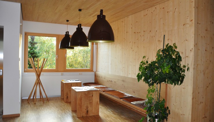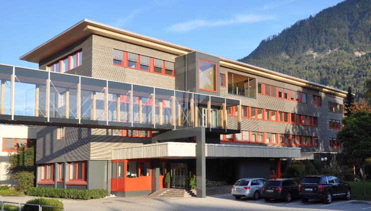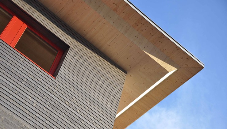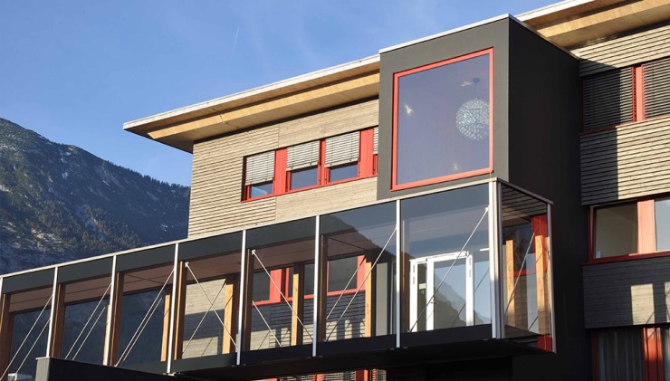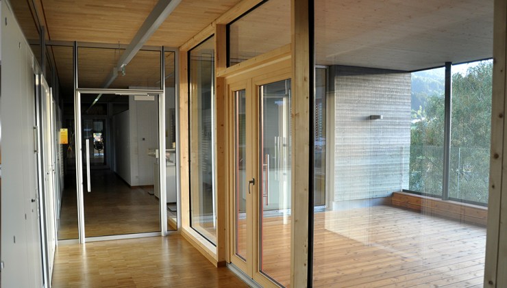 In den Jahren 2010/11 wurde das bestehende dreigeschossige (E+2) Verwaltungsgebäude der Adler-Werk Lackfabrik in Schwaz durch eine eingeschossige Aufstockung sowie durch einen Zubau im Südosten erweitert. Dabei realisierten die Planer beide Eingriffe in Holzbauweise, sodass der neu gestaltete Baukörper heute optisch eine Einheit bildet. Aufstockung und Zubau beherbergen Büro-, Besprechungs- und Sanitärräume, einen Technikraum und eine teilüberdachte Terrasse. Die vertikale Erschließung erfolgt auch künftig über die beiden bestehenden Stiegenhäuser, die zusammen mit dem Personenlift in das neue Dachgeschoss verlängert wurden. Zusätzlich statteten die Planer den südöstlichen Zubau mit einem neuen Personenaufzug aus. Die hinterlüftete Holzfassade der Erweiterung wurde – anstelle der Betonfertigteile und der Ortbetonwände – auch auf den thermisch sanierten Bestandsbau übertragen. Nach oben hin abgeschlossen wird das erweiterte Verwaltungsgebäude durch ein Flachdach mit einem großzügig auskragenden Vordach.