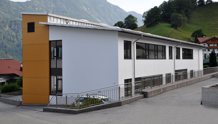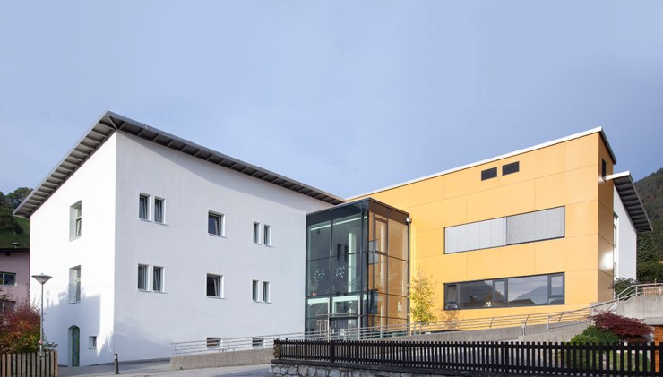 Das bestehende Schulgebäude im Ortszentrum von Wiesing beherbergt 4 Klassen, einen Gymnastikraum, die Direktion und erforderliche Nebenräume. Im Rahmen eines geladenen Wettbewerbes wurden seitens der Gemeinde Lösungsvorschläge für eine Erweiterung mit 4 Klassen, Werkräumen, einen Norm-Turnsaal und den erforderlichen Nebenräumen eingeholt. Das Projekt der Architekt Schwärzler ZT GmbH wurde als beste Lösung im Rahmen dieses Verfahrens ausgewählt. Grundsatzideen: optimale Orientierung der neuen Klassen, funktionelle Einheit von Neubau und Bestand mit niveaugleich angeordneten Räumen, zentral angeordnetes übersichtliches Foyer, geschützte Freiraumbereiche sowohl befestigt als auch begrünt für die Kinder, wirtschaftliche Bauweise mit energetisch optimierten Bauelementen.